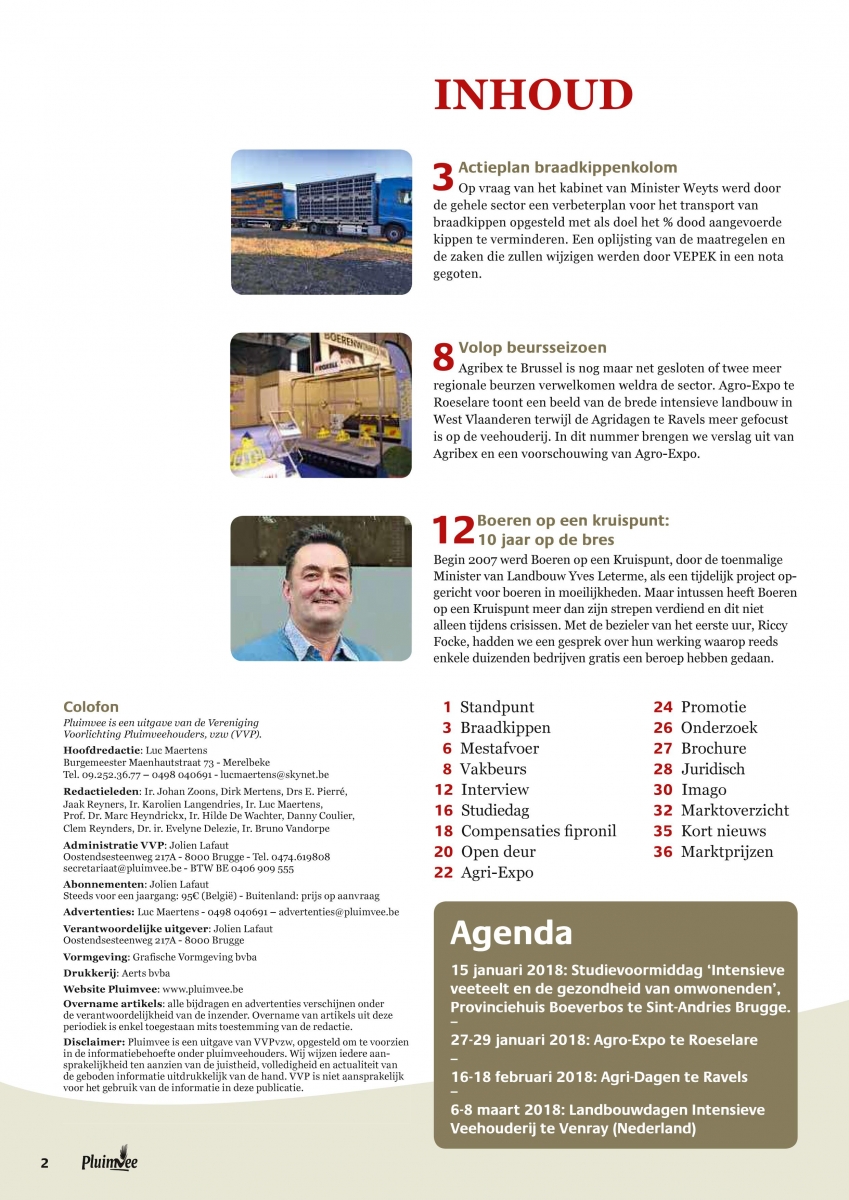 In het januarinummer van ons PLUIMVEE-blad kan u meer lezen over volgende onderwerpen: